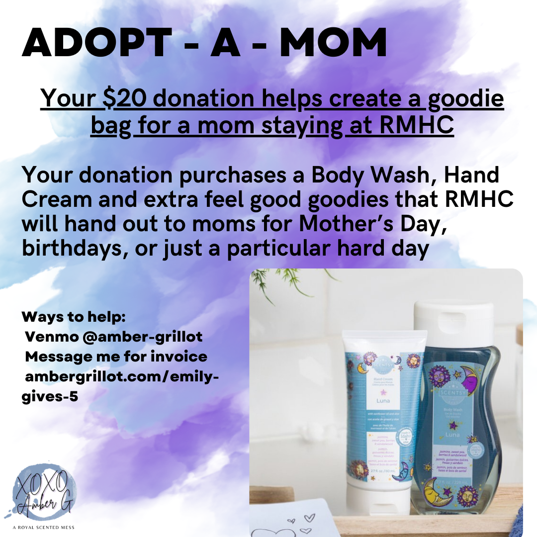 Every order placed through the fundraiser link earns rewards. I use all of those rewards to purchase Scentsy items RMHC has specifically requested — things they use to spoil parents, and bring a little comfort during hard days. (if you are a local person or a hey order me this person just say “add to RMHC” and i’ll do that.)